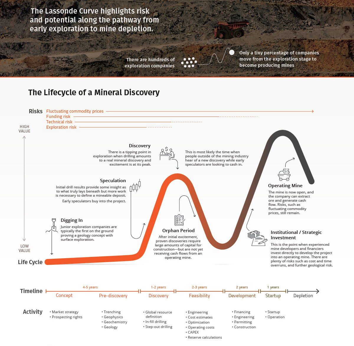 Figure 1: Visualizing the lifecycle of a mineral discovery made by a junior mining company
