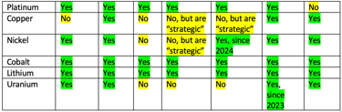 Table 1: Critical minerals status of Host Rock’s nine metals under coverage according to various major governments